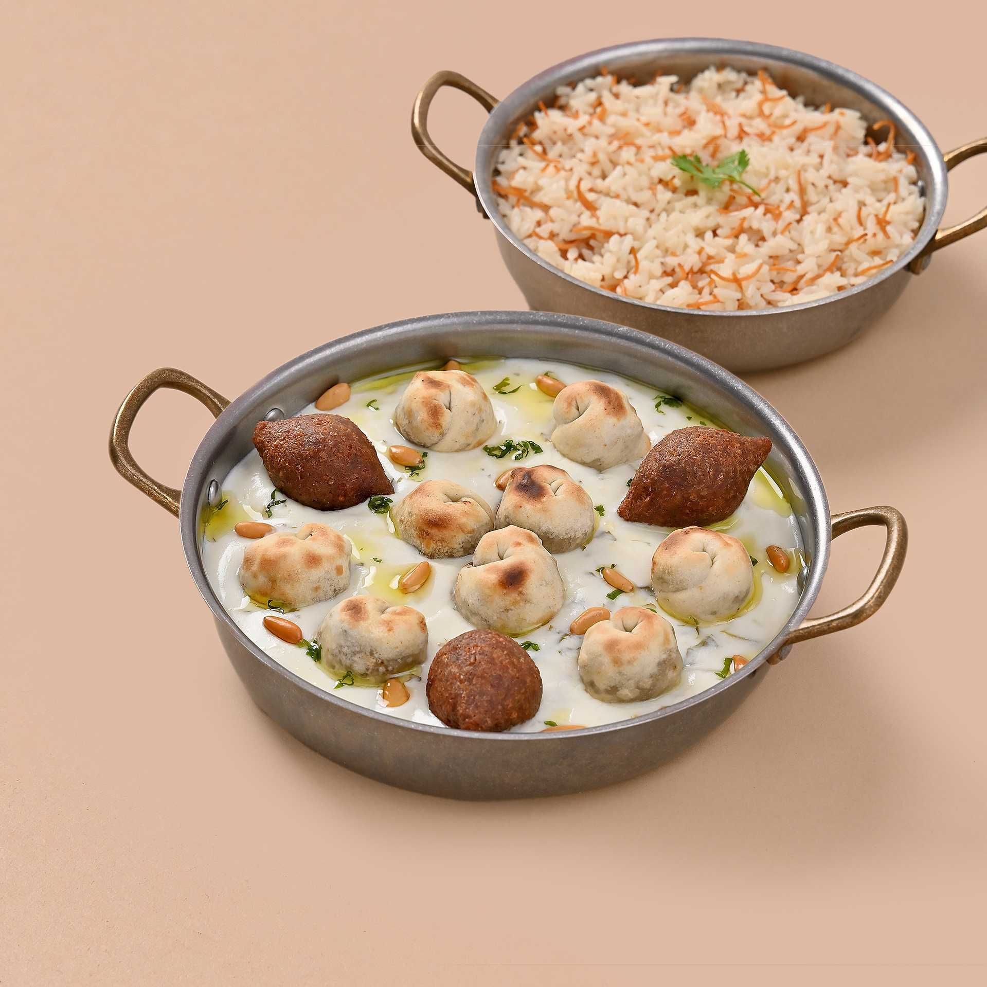 Tender dough parcels filled with seasoned minced meat, cooked in warm yogurt sauce with garlic and coriander, served with fluffy vermicelli rice.